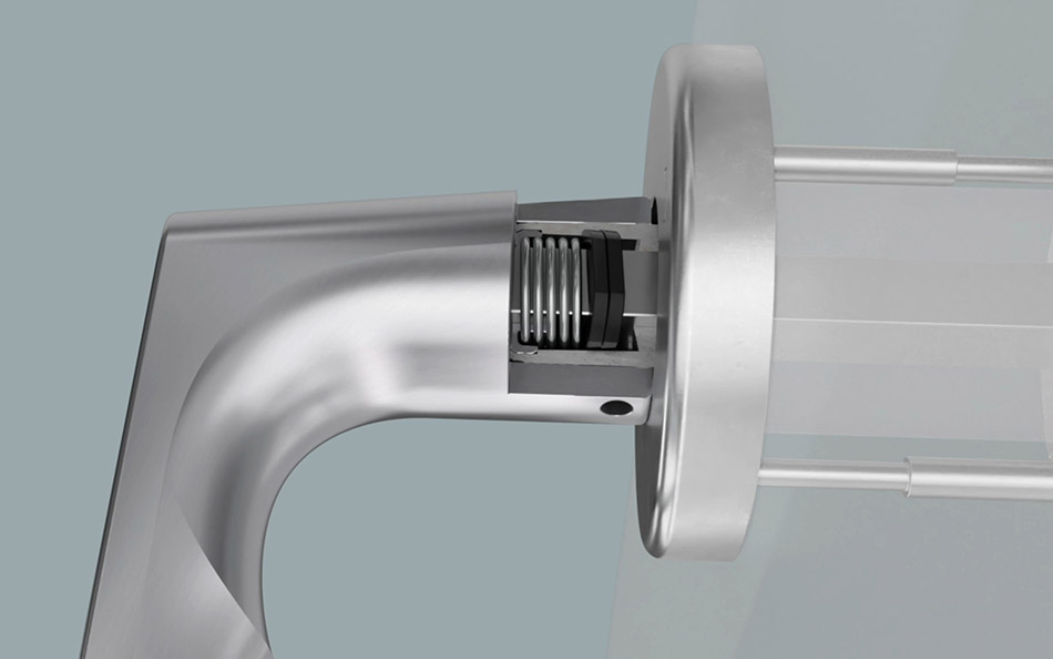 Karşı kolun içine entegre edilmiş sıkıştırma mekanizması sayesinde kapı kolları tek hareketle, neredeyse boşluksuz ve kalıcı olarak güvenli şekilde birleştirilebilir.